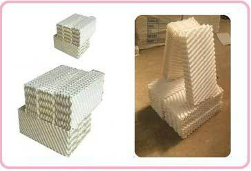 The air pressure drop through the fill is negligible. The fills are available with flute height of 6mm, 12mm, and 19mm with sheet thickness of 1mm and 1.2mm.Size available as per client requirement